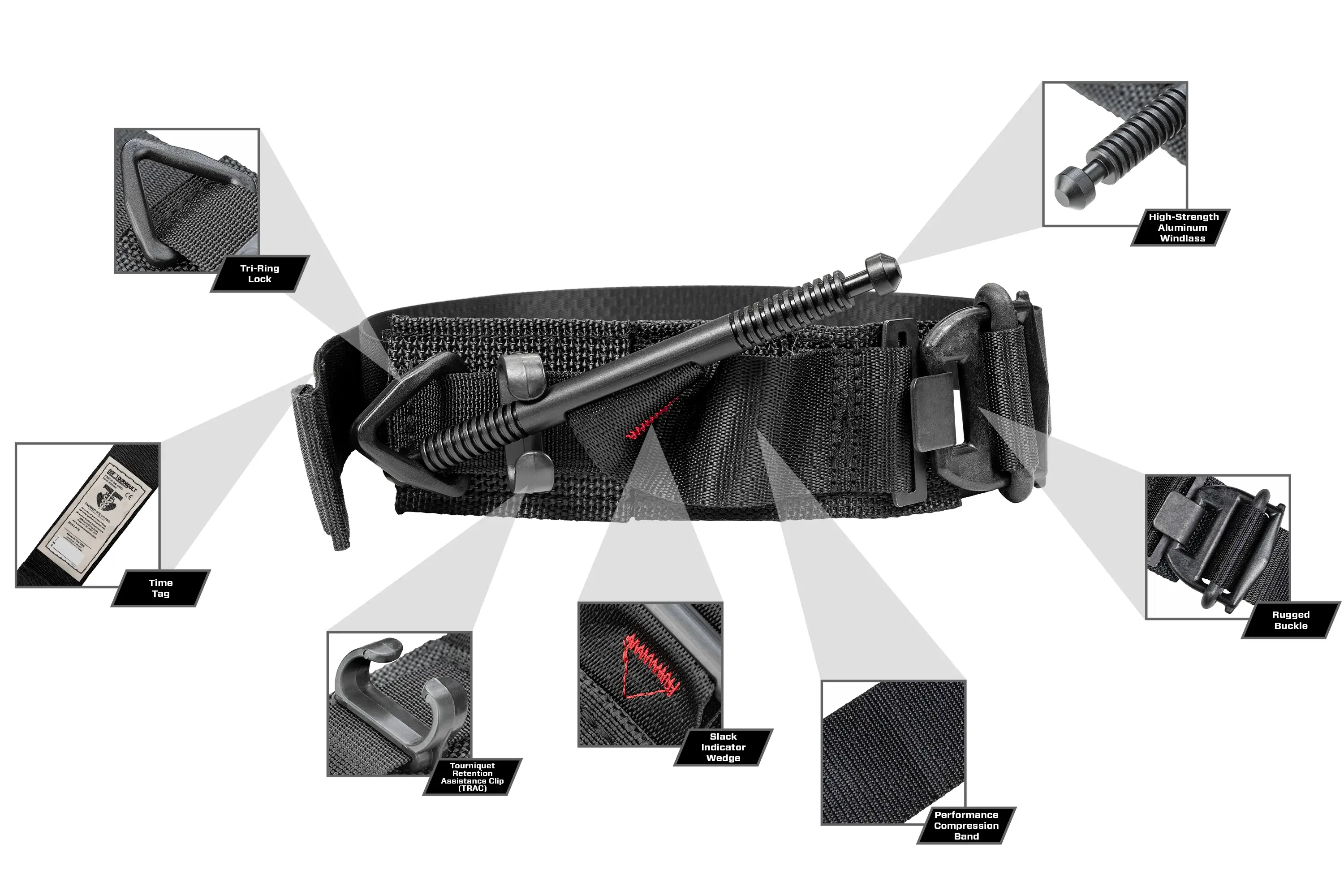 - Tri-Ring Lock™ and Tourniquet Retention Assistance Clip™ for windlass securement